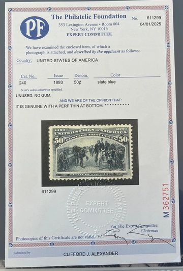 U.S. #240 Mint NG Very Nice Centering, Slate Blue, Perf min thin, Upgrade your copy. 2025 PF CERT.