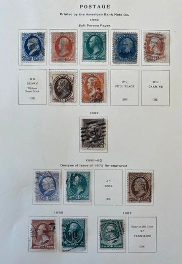 US Used 1879-82 182, 183, 184, 185, 186, 188, 189, 205, 206, 207, 209, 210, 211, 213. Hinged